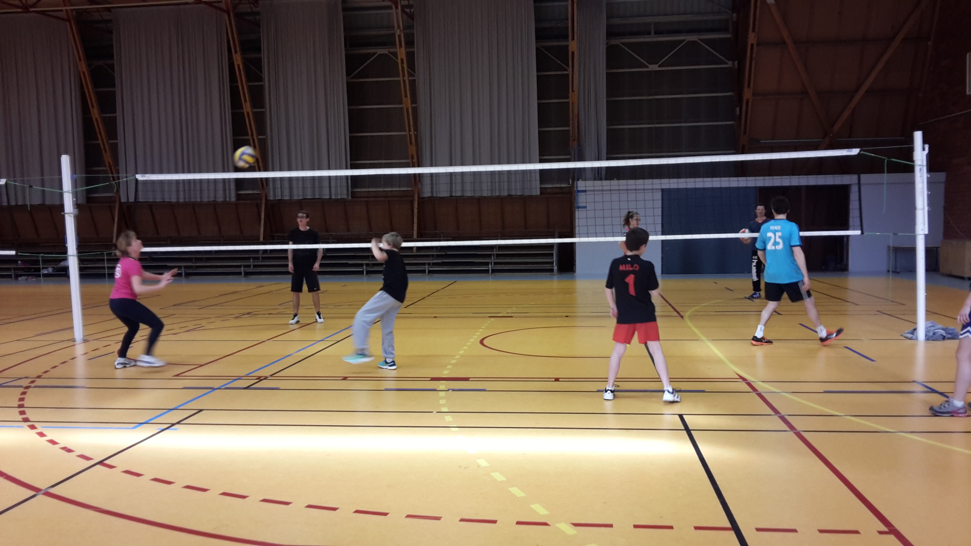 24/06/2016 - Découverte du volley assisPour le dernier entrainement de la saison, les jeunes ont expérimenté une branche peu connue du volley-ball : Le volley assis, ou volley handisport reprend les rêgles du volley avec quelques adaptations (taille du filet, fautes).
