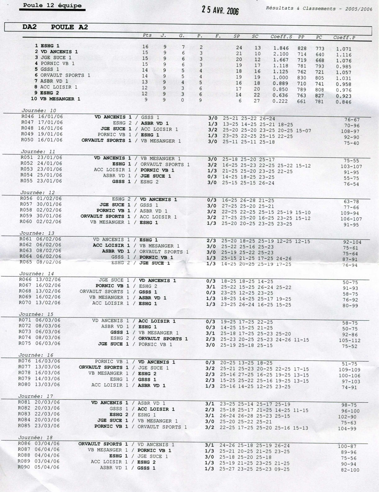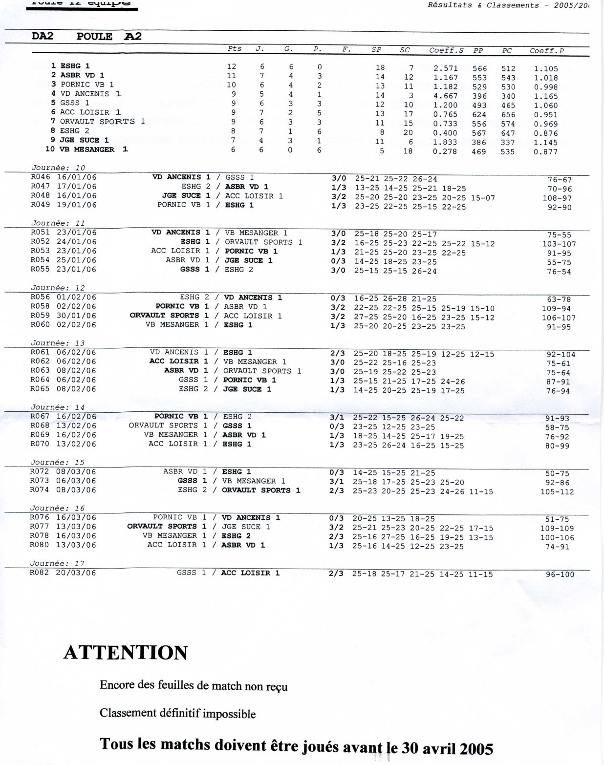 23/05/2006 - Classement finaux Poule A2