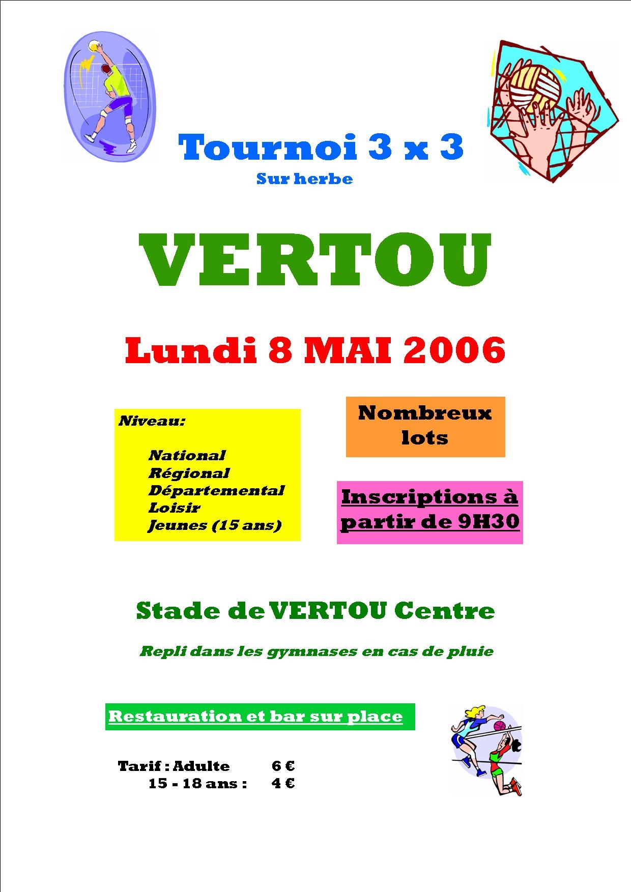 24/04/2006 - 8 Mai 2006 - Affiche Tournoi VertouAffiche de l'invitation au tournoi de Vertou le 8 Mai en 3x3 sur Herbe