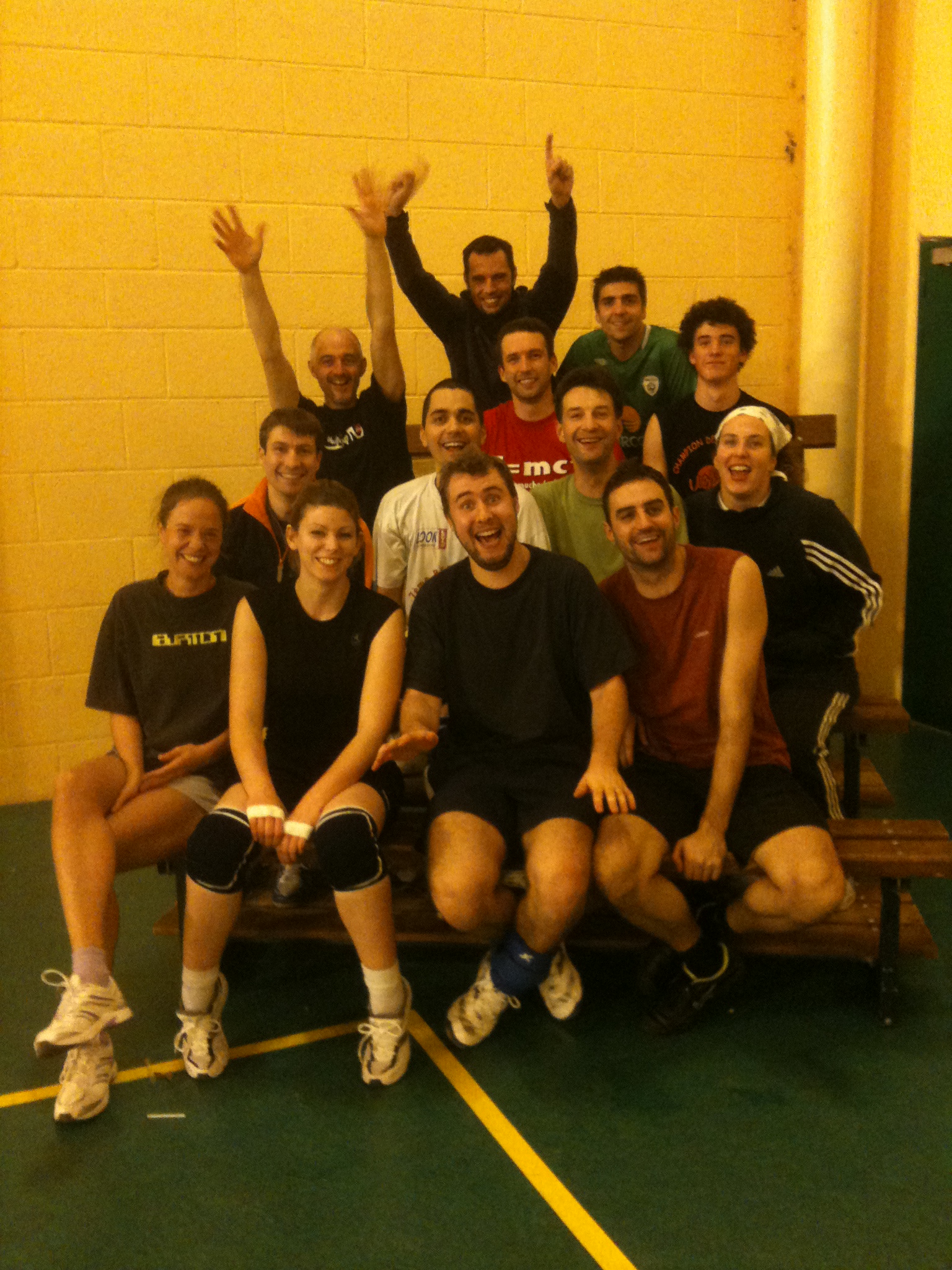 Après quelques heures de volley, il reste encore un peu d'énergie à tout le monde pour lever les bras devant le photographe.
